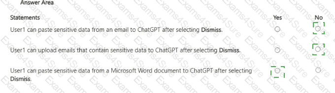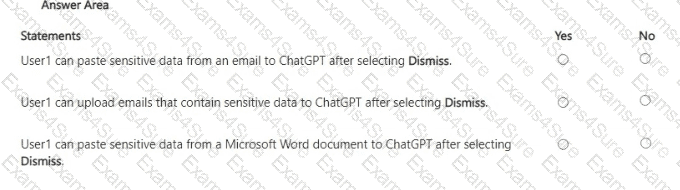 You have a Microsoft 365 E5 subscription that contains a user named User1. The subscription contains an Endpoint data loss prevention (Endpoint DLP) policy as shown in the Actions exhibit. (Click the Actions tab.)