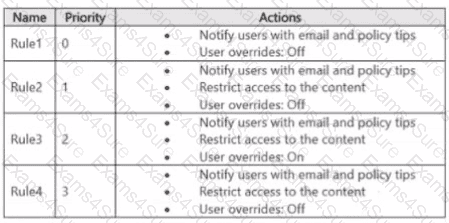You have a data loss prevention (DIP) policy that has the advanced DIP rules shown in the following table.