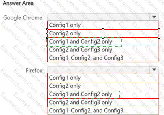 Each configuration uses either Google Chrome or Firefox as a default browser.