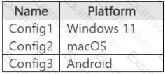 You have a Microsoft 365 E5 subscription that contains the device configurations shown in the following table.