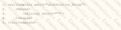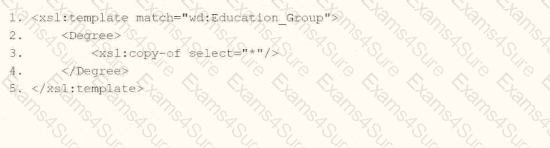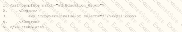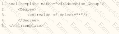 What is the XSLT syntax tor a template that matches on wd: Educationj3roup to produce the degree data in the above Transformed_Record example?